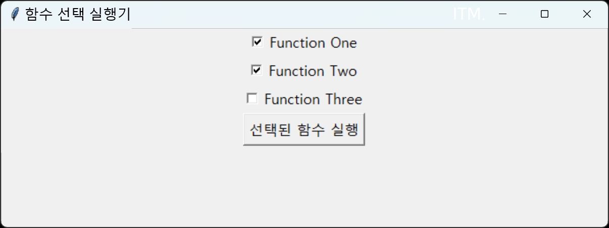 □ 체크 버튼: 각 함수에 대해 체크 버튼을 생성하고, 선택 여부를 BooleanVar 로 관리합니다.