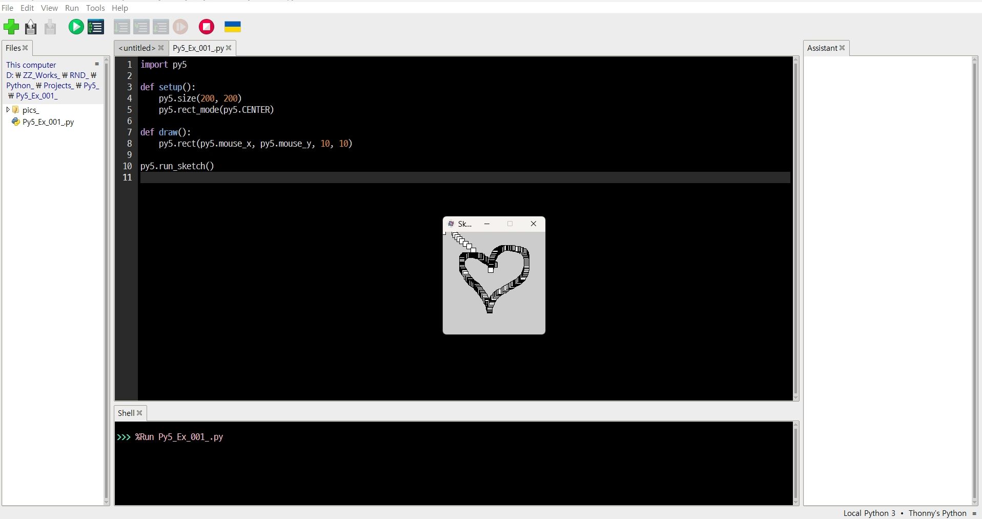 # py5는 외부 프로그램이므로 Python IDLE나 Thonny IDE에서 사용하려면 설치 과정을 거쳐야 합니다.