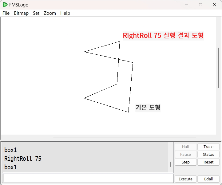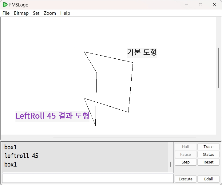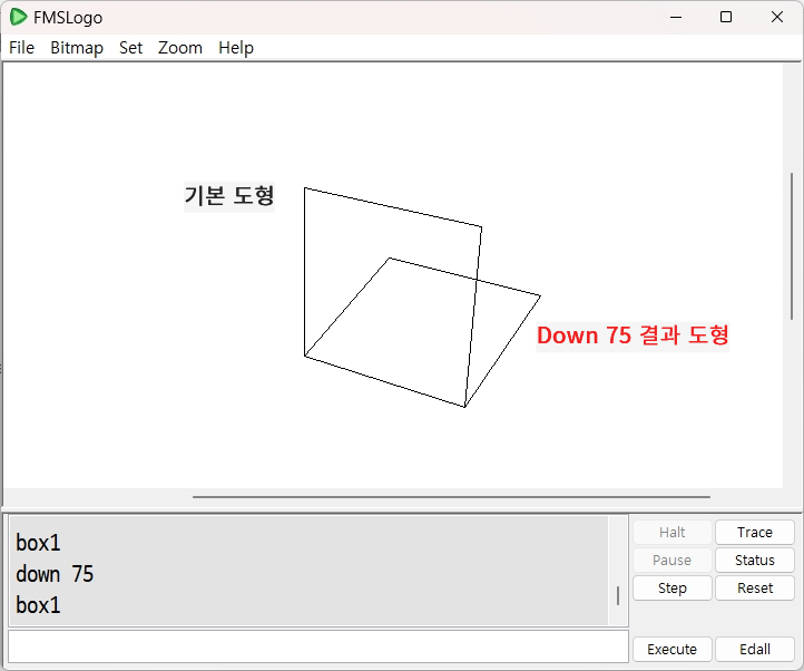 ■ 주의 : Up, Down, LeftRoll(=LR), RightRoll(=RR) 명령어들은 모두 3D 환경에서만 작동되는 명령어들입니다. Perspective 명령으로 3D 환경으로 전환한 다음에만 정상적으로 실행됩니다. 2D 환경으로 되돌아오는 명령어는 Window입니다.
