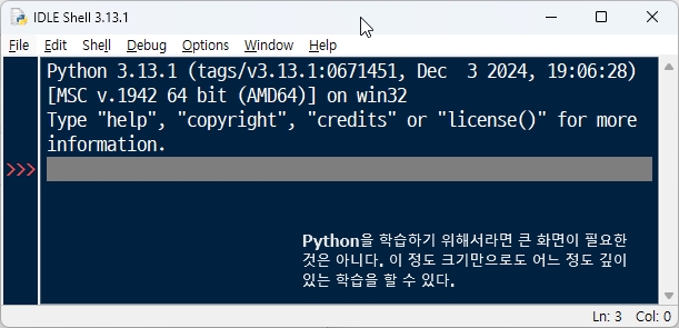 이 전환 방법은 파이썬 아이들IDLE 환경에서의 기본기 중에서는 매우 중요한 내용입니다.